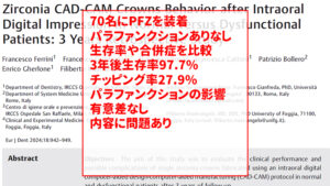アイキャッチ 2025/11/05 この記事を書いている人 - WRITER - 織田展輔 5代目歯科医師(高知市開業) 東京医科歯科大学(現東京科学大学)卒業(47期) 同大学院修了 【非常勤講師】 徳島大学、岩手医科大学 この記事を書いている人 - WRITER - 織田展輔 5代目歯科医師(高知市開業) 東京医科歯科大学(現東京科学大学)卒業(47期) 同大学院修了 【非常勤講師】 徳島大学、岩手医科大学 関連記事 - Related Posts - 歯質が極端に薄い支台築造に二ケイ酸リチウムポストを使う方法 口腔機能と全身のフレイルの関連性 機能歯数10本未満の女性高齢者は義歯使用未使用で以後15年間での死亡率に有意差あり 無歯顎の概形印象をうまくとるコツ?下顎編 最新記事 - New Posts - PFZの予後とパラファンクションの影響 モノリシックジルコニアクラウンの5年生存率、成功率に関する研究 モノリシックジルコニアクラウンとポーセレン前装ジルコニアクラウンの臼歯部における予後比較 歯質が極端に薄い支台築造に二ケイ酸リチウムポストを使う方法 - Comments - コメントをキャンセルメールアドレスが公開されることはありません。 ※ が付いている欄は必須項目ですコメント ※ 名前 メール サイト 次回のコメントで使用するためブラウザーに自分の名前、メールアドレス、サイトを保存する。 Δ